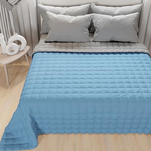 PETTI Artigiani Italiani - Quilt & Middle Quilt, Lätt Dubbelsidigt Täcke, Quiltat Överkast, Sommar Lätt Täcke, Himmelsgrå