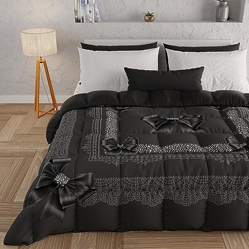 PETTI Artigiani Italiani - Quilt, Vintertäcke, vintertäcke, fyrkantigt och halvsidigt dubbelsidigt täcke och digitalt tryck med diamantrosett, 100% allergivänlig mikrofiber, tillverkad i Italien