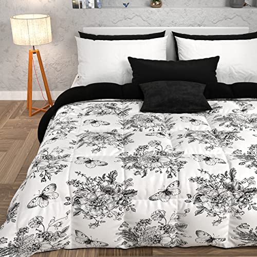 PETTI Artigiani Italiani - Quilt, Dubbelsidigt dubbelsidigt täcke enfärgad och digitalt botaniskt tryck 03 01, 100% allergivänlig mikrofiber
