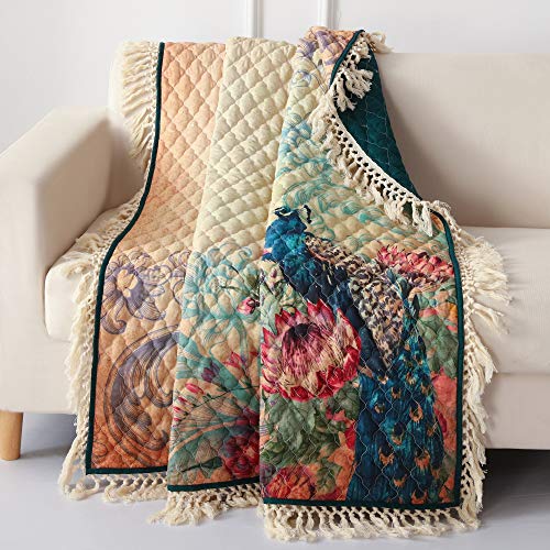 Qucover enkelt överkast, quiltad mjuk bomull blå blommiga lapptäcken, quiltad filt 150 x 200 cm