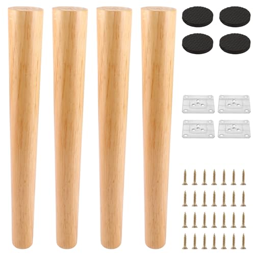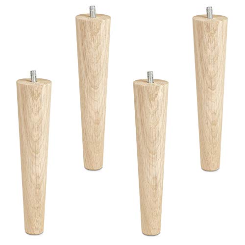 CYEER 4 stycken möbelfötter i trä, 40 cm, träfötter för möbler, rund ek, rå, ersättningsbordsben för att ersätta gamla möbelben för soffor, matbord och TV-skåp