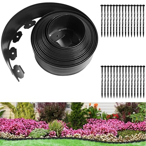 UISEBRT Rabattkant plast 50 m – flexibel gräsmatta kant med markankare plast, rabattinfattning, trädgårdsstaket, rabattkant, gräsmatta gräns, gräsmatta, gräns, trädgård, dekorativ, svart