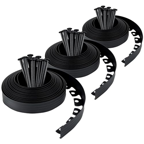 UISEBRT Rabattkant plast 10 m – flexibel gräsmatta kant med 30 markankare plast, rabattinfattning, trädgårdsstaket, rabattkant, gräsmatta gräns, gräsmatta, gräns, trädgård, dekoration, svart