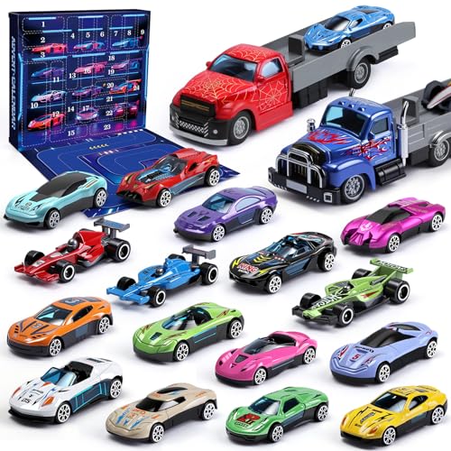 Julkalender Juladventskalendrar Adventskalender Barn 24 Legeringsbilar + 2 Katapultsläp för Barn 3-12 År Racerbil Leksaker Present till Pojkar & Flickor