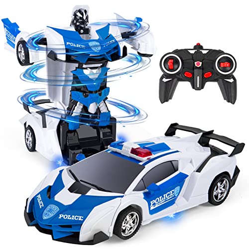 Highttoy Fjärrstyrd bil för barn 3-12 år, polisleksaksbil fjärrstyrd transformerbar robotbil leksaker 360° rotation transformator RC billeksak för pojkar flickor gåvor 2,4 GHz 1:18 racerbil, vit