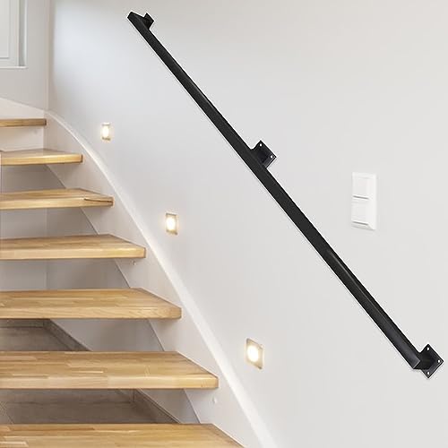 Gorssen Ledstång industriella rörledningar för trappor, väggsäkerhetsramp, heminredning, räcke, trappräcke för inomhus utomhus - svart, 180 cm