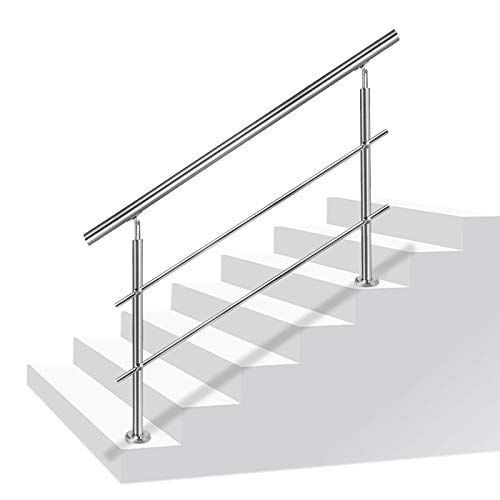 NAIZY Ledstång i rostfritt stål räcke trappräcke med 2 stolpar för balkong trappor inomhus och utomhus – 180 cm 2 tvärstänger