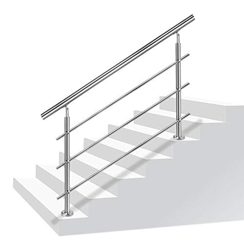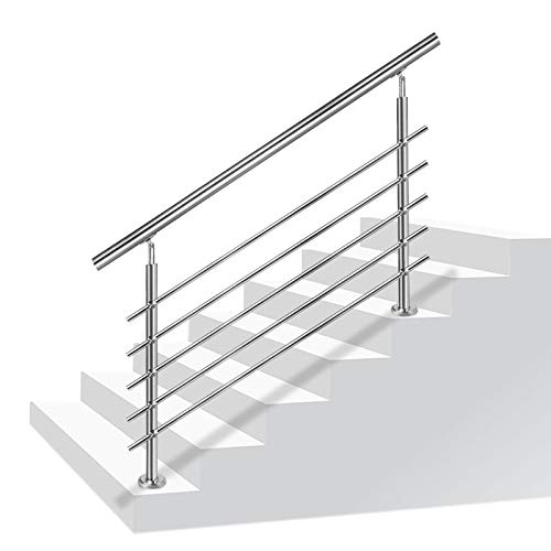 Joparri räcke rostfritt stål ledstång trappräcke – 150 cm 4 tvärstag – inomhus och utomhus för trappor rustning balkong – 201 rostfritt stål slätt med tillbehör och instruktioner