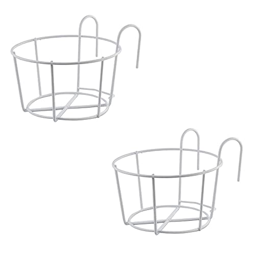 Bhina 2 stycken räcke planteringskärl blomkruka, blomkruka, rund blomkruka, trädgårdsjärn, blomkruka, hängande räcke, runda växtkorgar, hylla, lämplig för balkong, trädgård, staket, inomhus och
