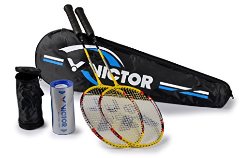 Victor badmintonset, 2 x 2200/3 racketväska/nylonboll badmintonracket – gul/silver/röd, 67 cm
