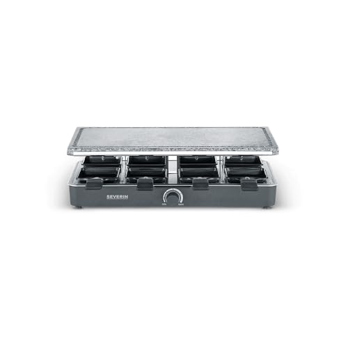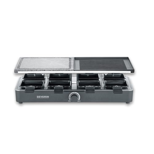SEVERIN raclettegrill med naturlig grillsten och grillplatta, raclette med non-stick grillplatta och 8 pannor, bordsgrill för 8 personer, max. 1300 W, svart, RG 2371, RG 2371