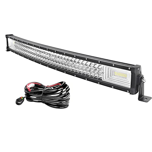 AUXTINGS 82 cm 405W krökt LED ljus bar lampor 3 rad LED ljusramp körljus off-road vattentät punkt kombo översvämning stråle LED lampor med 12V kabelnätssats för fordon pickup lastbil UTV SUV båt