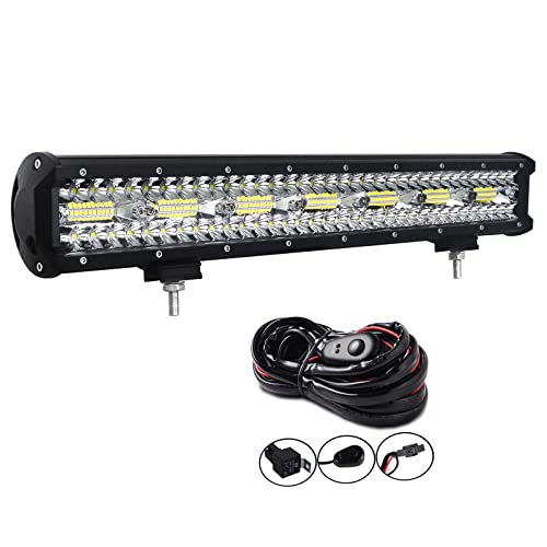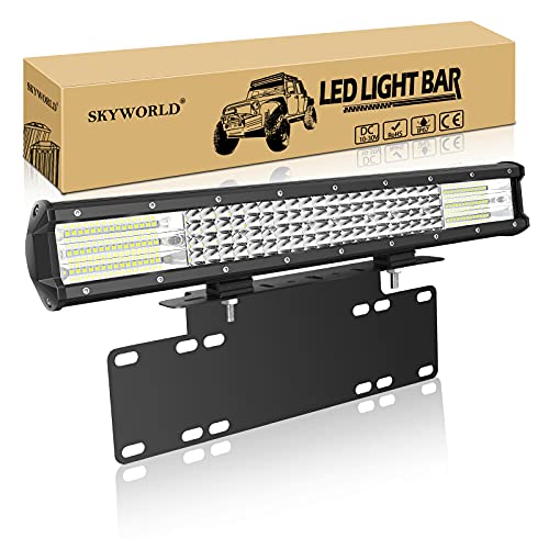 SKYWORLD LED-ljusramp, 20 tum 510 W, fyra rad spot-flood kombinationsstråle, offroad-körnings lampor med monteringsfäste för registreringsskylt för lastbil, bil, terrängfordon, SUV, 4 x 4 båtarbetslampa 12 V 24 V.