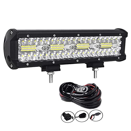 AUXTINGS 38 cm 300W LED ljus bar pod lampor 3 rad körljus off-road lampor vattentät punkt översvämning kombo stråle LED kuber lampor med 12V kabelnätssats för fordon pickup lastbil ATV UTV SUV båt