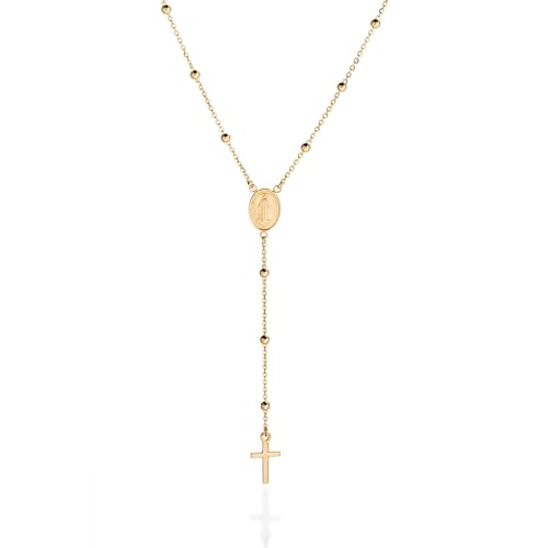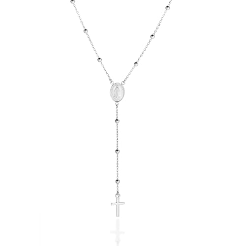 Flongo Kristus kors radband halsband: Jungfru Maria hänge halsband - Jesus krucifix rostfritt stål gåva med Sankt Benedikt-medalj för kvinnor, Rostfritt stål
