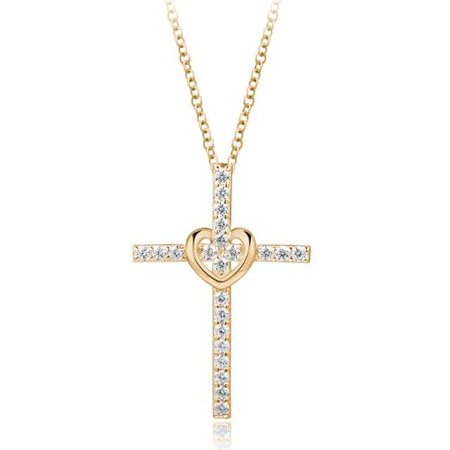 QUADRI 925 silver kors damhalsband - radband eller stort kors och hjärta halsband cm 45 5 - eleganta och enkla smycken för present till dam mamma flickvän syster, Media, Sterlingsilver, Ingen ädelsten