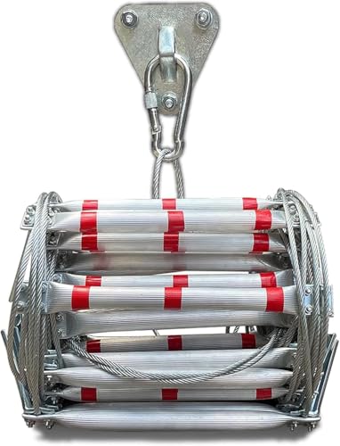Brandstege 3 Våningar | Repstege 8m för Brandflykt | Nödstege för Hus & Lägenhet | Hopfällbar, Bärbar och Kompakt | Räddningsstege för Balkong & Fönster | Säker Evakuering