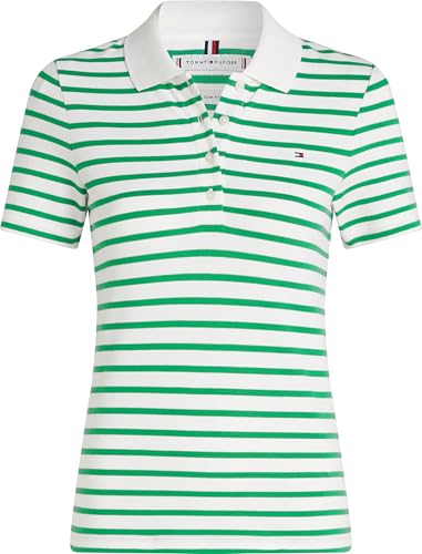 TOMMY HILFIGER Dam 1985 Slim Pique Polo SS WW0WW43225, Vit (Ecru/Radiant Green Stp), 3XL