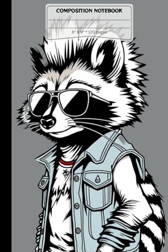 Radical Rockin 80s Raccoon Composition Book: A 6x9 inch College Ruled Book for Study, Lecture Notes or Sketching