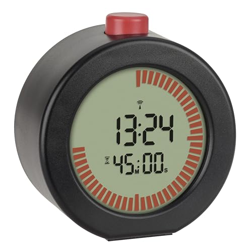 TFA Dostmann Digital väckarklocka för radio med stoppur och timer 60.2569 med tidszonsinställning, väckarklocka med snooze-funktion, radioklocka, perfekt för kontor eller klassrum, visuell display