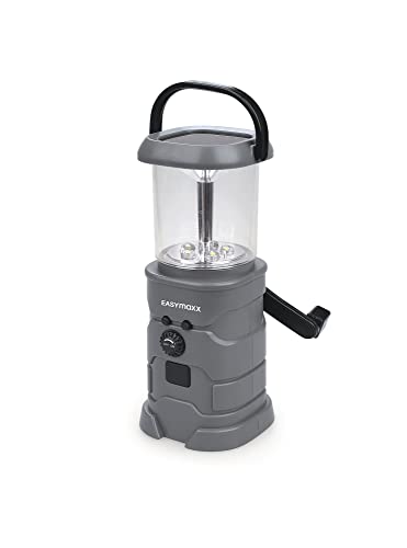 EASYmaxx Solcell med radio | nödfallsradio och lykta med vev | LED-ficklampa perfekt för utomhus camping och överlevnadsförebyggande | uppladdningsbar med sol, vev och USB [grå]