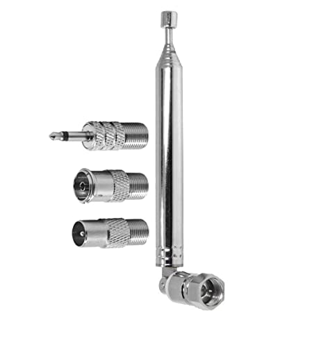 VooGenzek 7-Sektions Teleskopisk DAB Radioantenn, Antik FM Antenn Inomhusantenn 75 Ohm, F-typ Hankontakt med 3 Adaptrar, för Bordsradio, HiFi AV Stereomottagare Minisystem