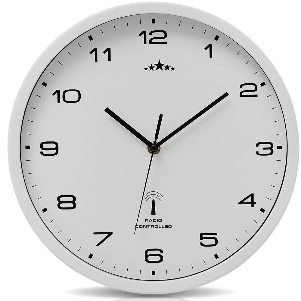 Radiostyrd väggklocka, tyst, 31 cm, vit