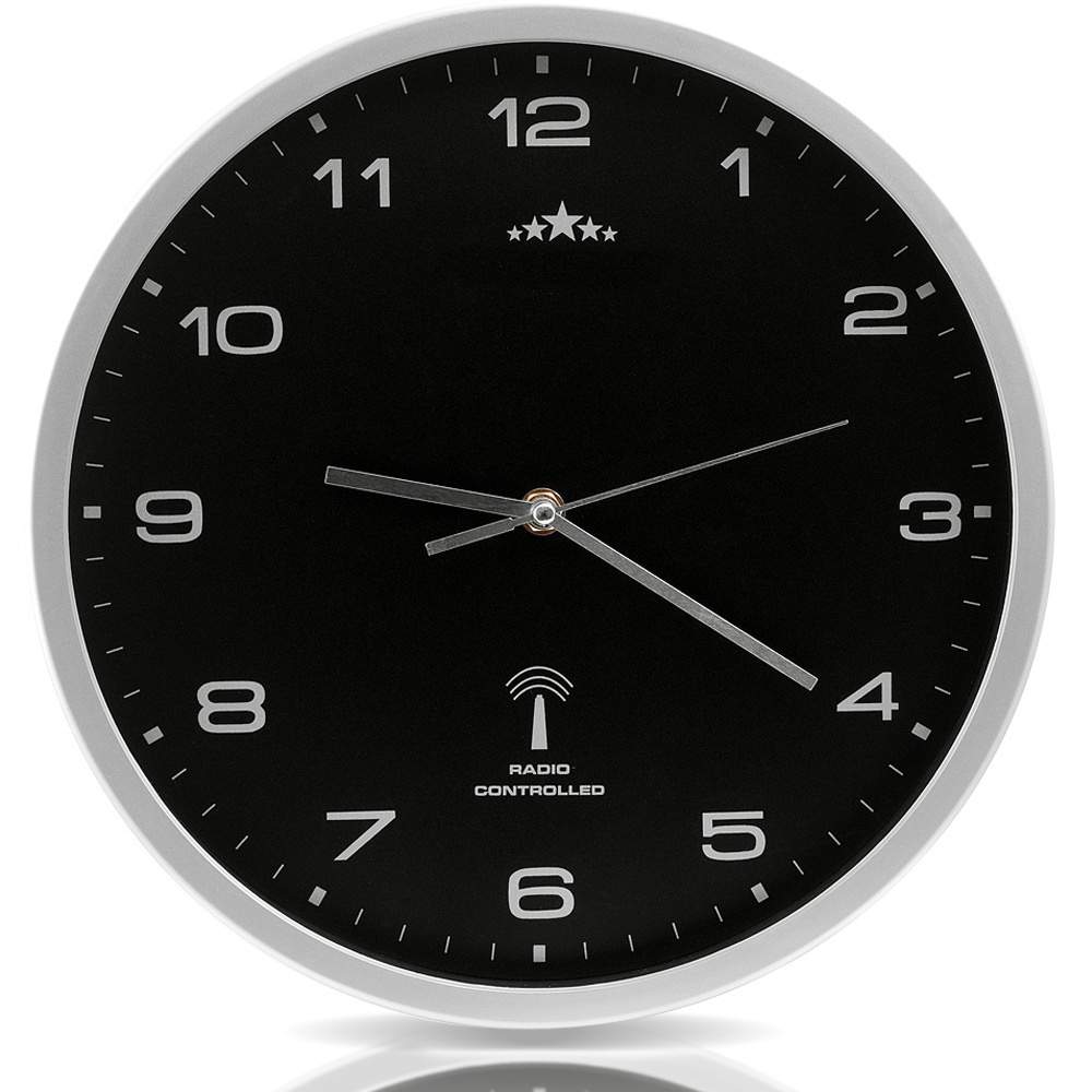 Radiostyrd väggklocka – Tyst, 31 cm, Svart/Silver