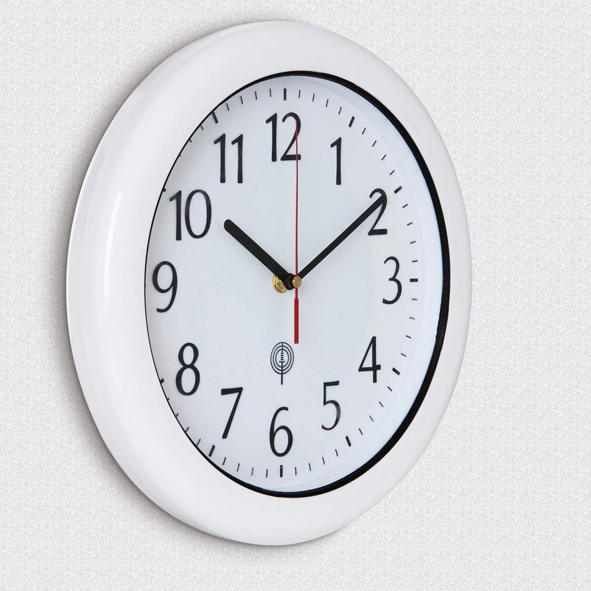 Radiostyrd väggklocka – Tyst, 31 cm, Vit/Silver