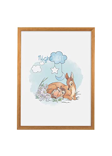 Komar Bildram trä ek med väggbild "Bambi Good Night" som set – storlek: 30 x 40 cm – väggmålning, dekoration, rådjur, barn