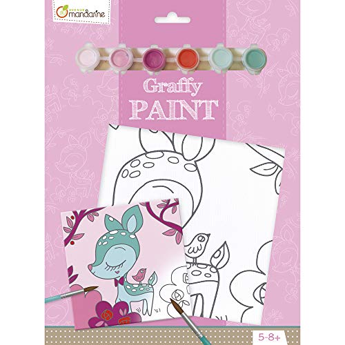 Avenue Mandarine PP013O målningsset Graffy Paint, med 1 förtecknad duk 20 x 20 cm, 6 färgrör och 1 pensel, perfekt för barn från 4–5 år, 1 set, rådjur