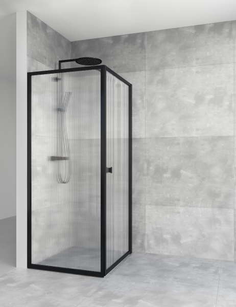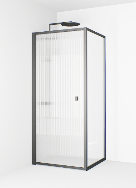 Empire Duschdörr Svart med Räfflat Glas