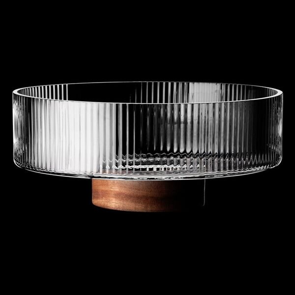 Skål med räfflat glas och träfot 3 L, 26 cm