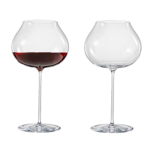 NireHoris rödvinsglas 2 stycken, räfflade vinglas, 710 ml kristallglas med långt handtag, räfflat vinglas, klart glas