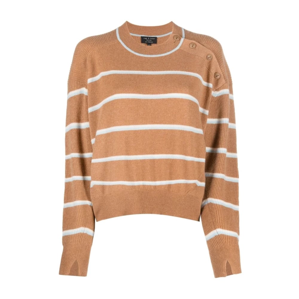 Rag & Bone, Stickade Tröjor , Dam, XS, Kashmir, Kashmir Randig Tröja i Beige
