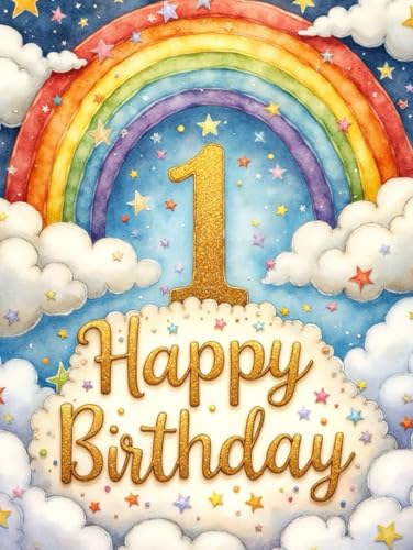Rainbow & Clouds First Birthday Guest Book: One Happy Cloud 1st Birthday Party Sign-In Keepsake: Colorful Rainbow Baby Birthday Memory Book with Guest Wishes