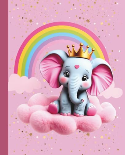 Cute Princess Elephant Composition Notebook for Girls: An Aesthetic Pink Journal for Girls in Kindergarten & Elementary featuring a Cute Baby Elephant on a Fluffy Rainbow Cloud - 110 Wide Ruled Pages
