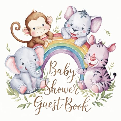 Baby Shower Guest Book: Beautiful Rainbow & Jungle Animal Themed Welcome Sign-in Keepsake for Friends & Family to Leave Messages for Parents & New Born