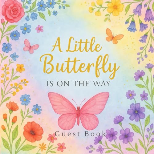 A Little Butterfly Is On The Way: A Colorful Baby Shower Guest Sign-In Book with Wishes, Advice, Gift Tracker, and Photo Keepsake – Rainbow Floral Theme for Baby Girls