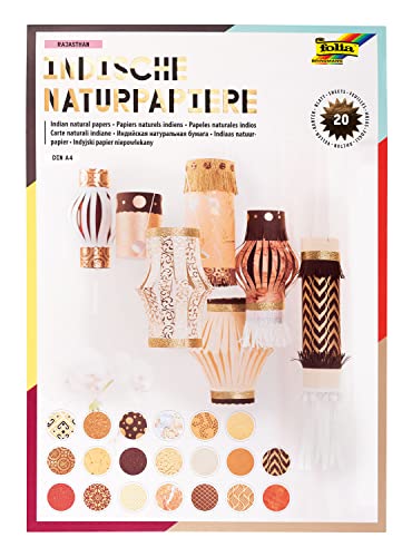 folia 550404 – Indiskt naturpapper "Rajasthan", handgjort papper, 20 ark sorterade i olika färger/motiv, DIN A4, för gratulationskort, scrapbooking och ädelt hantverk