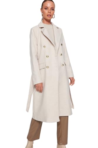 TRENDYOL Dam rak långa ärmar vanlig kappa plus size coat, ecru, 42 stor