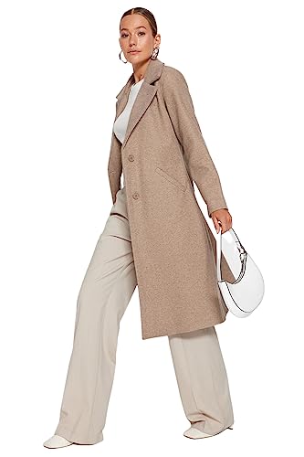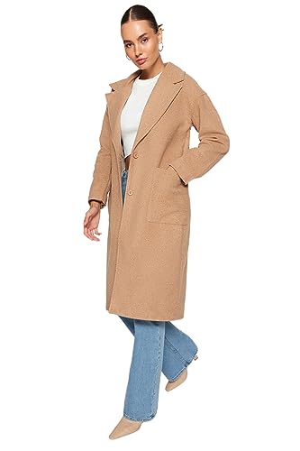 Trendyol damer rak långa ärmar kappa plus size coat, Kamel, 42 stor