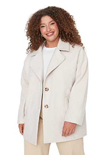 TRENDYOL Dam rak långa ärmar vanlig kappa plus size coat, ecru, 48 plus size