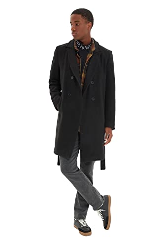 Trendyol herr rak långa ärmar vanlig kappa, svart, M