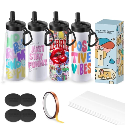 Cafultgo 4-pack sublimeringsglas tomma koppar vattenflaska 20 oz vit rak rostfritt stål tumlare med metallsugrör och lock för tumlare värmepress maskin sublimeringstryck