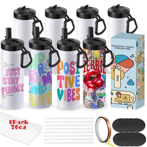 Cafultgo 8-pack sublimeringsglas tomma koppar vattenflaska 20 oz vit rak rostfritt stål tumlare med metallsugrör och lock för tumlare värmepress maskin sublimeringstryck