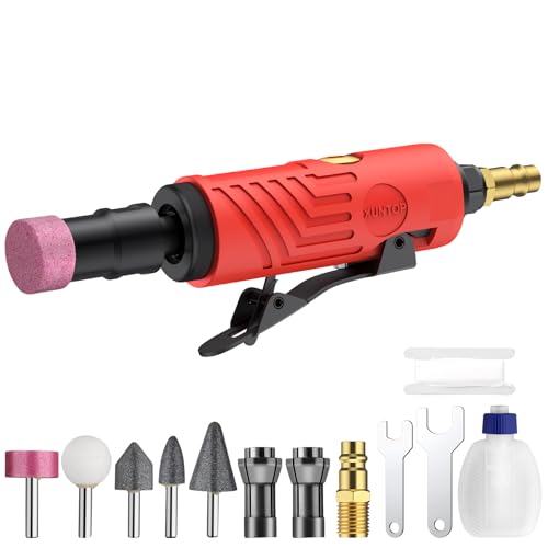 XUNTOP Vinkelslip 25000 rpm Rak slipmaskin med tom oljeflaska och 1/4" och 1/8" hylsor Luftdriven rak slipmaskin med bakre utblås för polering, kantutjämning, gradning, avgradning etc.