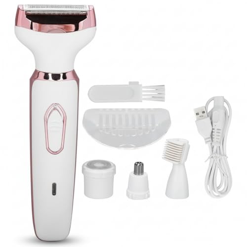 ACWOO Electric Lady Rakapparat, sladdlös 4 i 1 elektrisk rakapparat för kvinnor, uppladdningsbar smärtfri elektrisk rakhyvel Bikinitrimmar Vått och torrt hårborttagning för ansiktsben underarm, näsa
