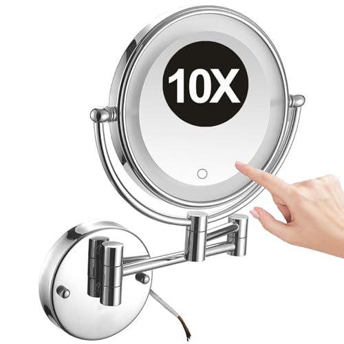 Zhufas Väggmontering med belysning, 1 x 10 x förstoring dimbar sminkspegel, väggspegel för badrum och hotell, med belysning 3 färger lampor 360° vridbar dimbar rakspegel