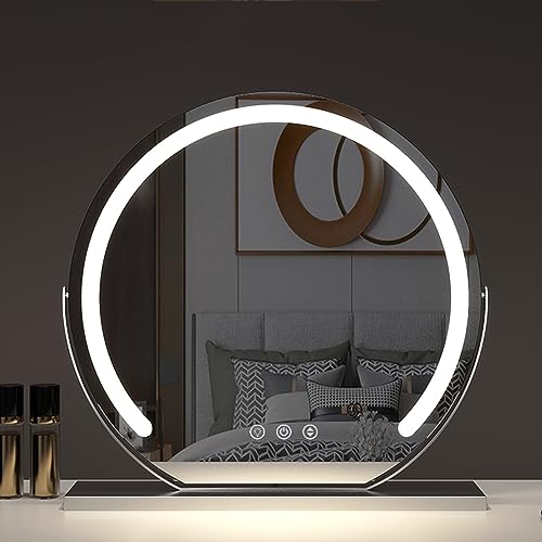 Spegel Sminkbord, Fristående Table Top Rakspegel, Sminkspegel Med Lampor, Light Up Spegel Sminkspegel Med Belysning 3 Färgtemperatur, Rund Svart Spegel ф50 Cm(Size:40cm,Color:Vit)